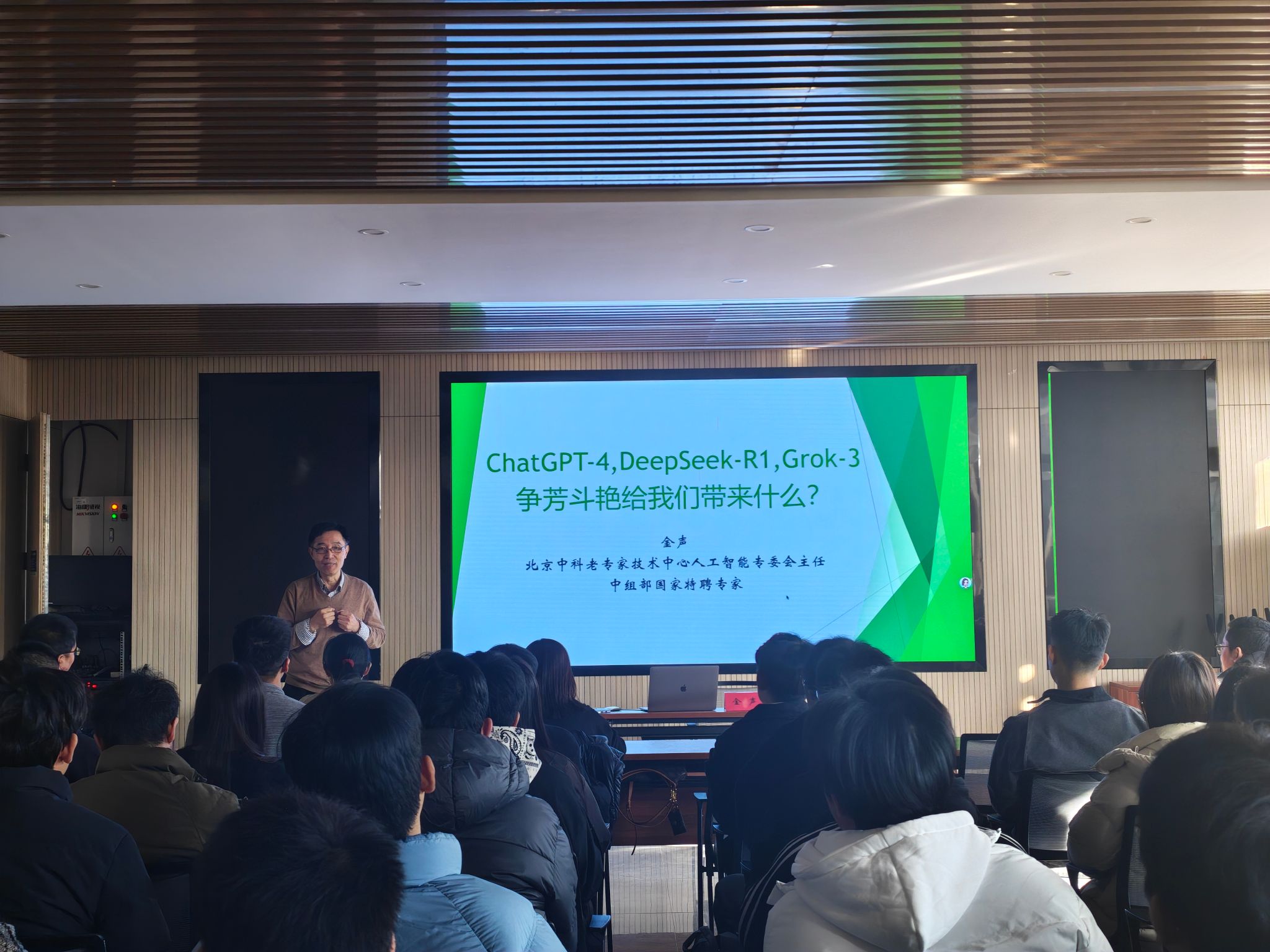 11月10日上午,内蒙古师范大学人工智能学院邀请中组部国家特聘专家、北京中科老专家技术中心人工智能专委会主任金声教授,开展主题为“ChatGPT-4,DeepSeek-R1,Grok-3争芳斗艳给我们带来什么?”的讲座,人工智能学院研究生及部分教师参会。