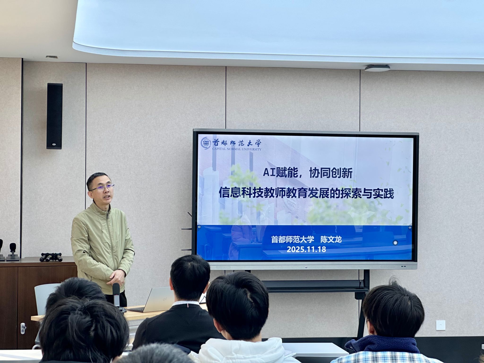 11月18日下午,首都师范大学信息工程学院副院长陈文龙教授和天津师范大学电子与通信工程学院、人工智能学院院长张宝菊教授应邀来我院作题为“AI赋能,协同创新,信息科技教师教育发展的探索与实践”和“聚能·攻坚·赋能:构建‘三校一院’信创AI融合新生态”学术报告,学院部分教师,2025级未来科技实验班、2025级电子信息专硕班学生参加了学术报告,报告由李艳玲老师主持。