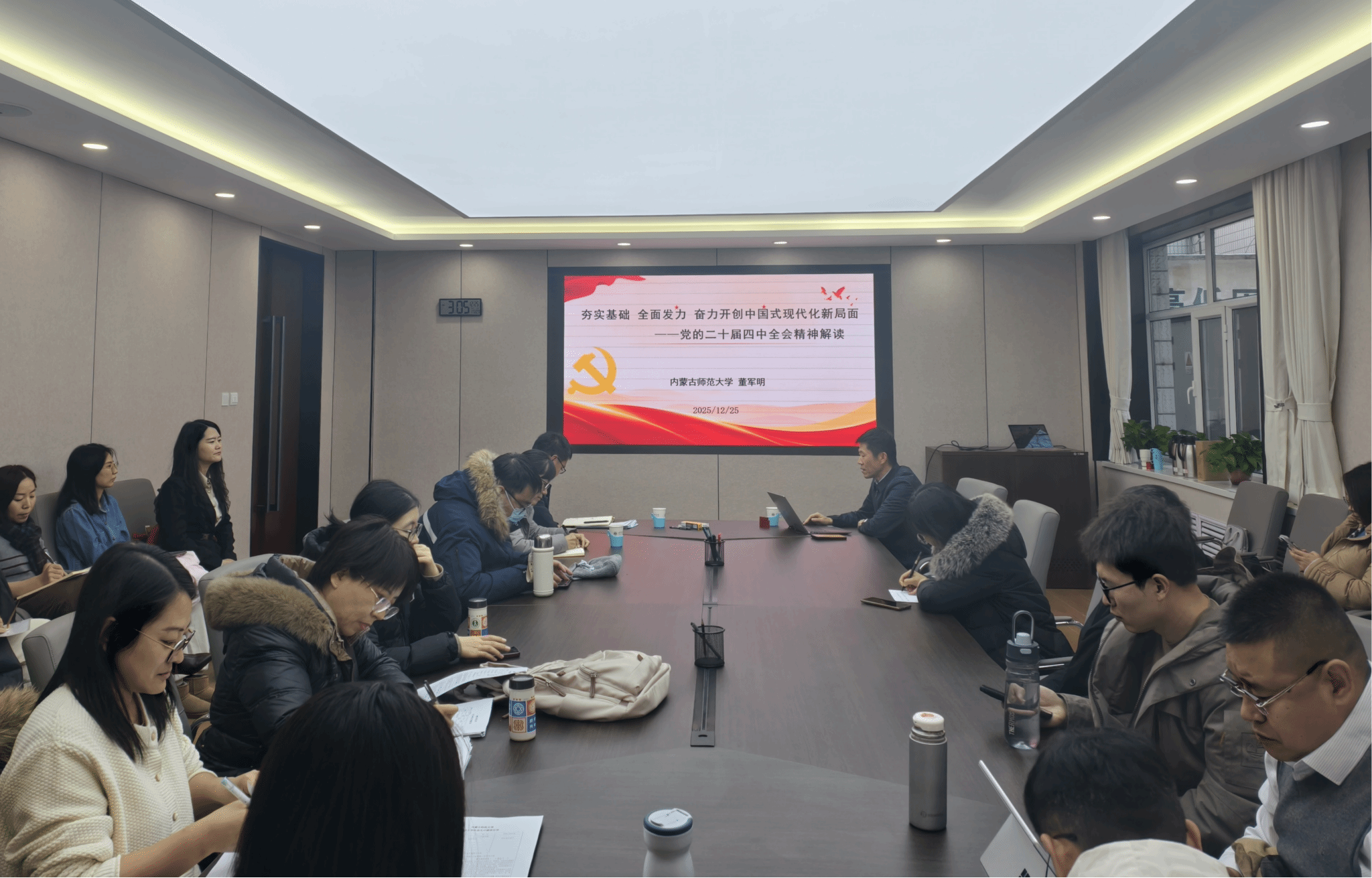 为深入学习贯彻党的二十届四中全会精神,进一步统一思想、凝聚共识,12月25日下午,人工智能学院、未来科学与技术学院、中共党史与党建学院、中华民族共同体学院联合举办学习贯彻党的二十届四中全会精神专题学习会。本次学习会邀请宣讲团成员董军明老师作专题辅导报告,四个学院的全体教师参加集中学习。