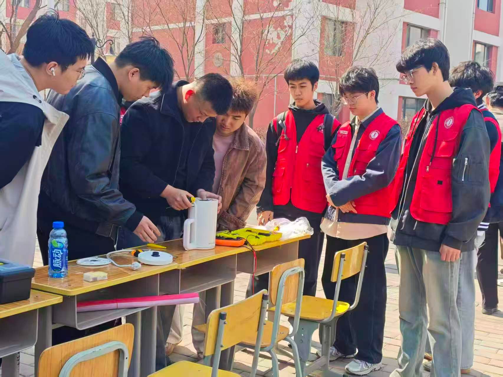 活动中,志愿服务队分工明确、有序协作。志愿者们热情接待前来咨询的社区居民,认真排查、免费维修各类故障小家电,同时向居民普及安全用电、电器日常保养等知识,以实际行动为居民排忧解难,展现了青年学子扎实的专业素养与良好的精神风貌。